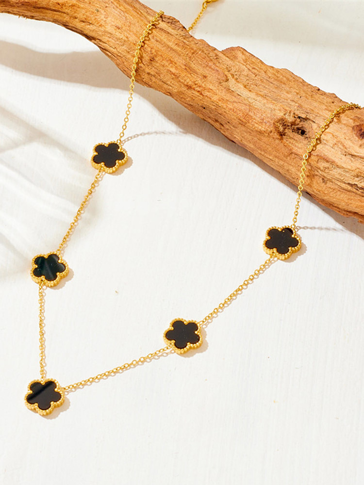 Dainty Flower Necklace, Black Shell Choker Necklaces for Women, Cute Stainless Steel Jewelry Not Fade NC-1501G – Sumsfashion