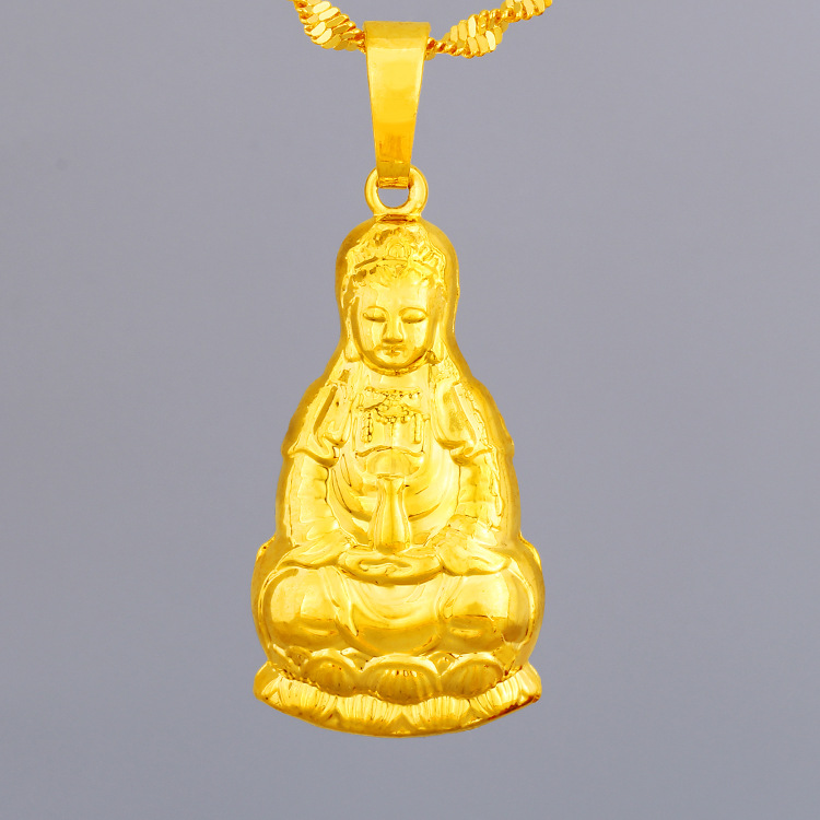 Real 100% Pure 24K Gold Color Avalokitesvara Statue Necklace for Women Men Fine Jewelry Gifts Necklaces Chain Wedding Engagemen – Sumsfashion