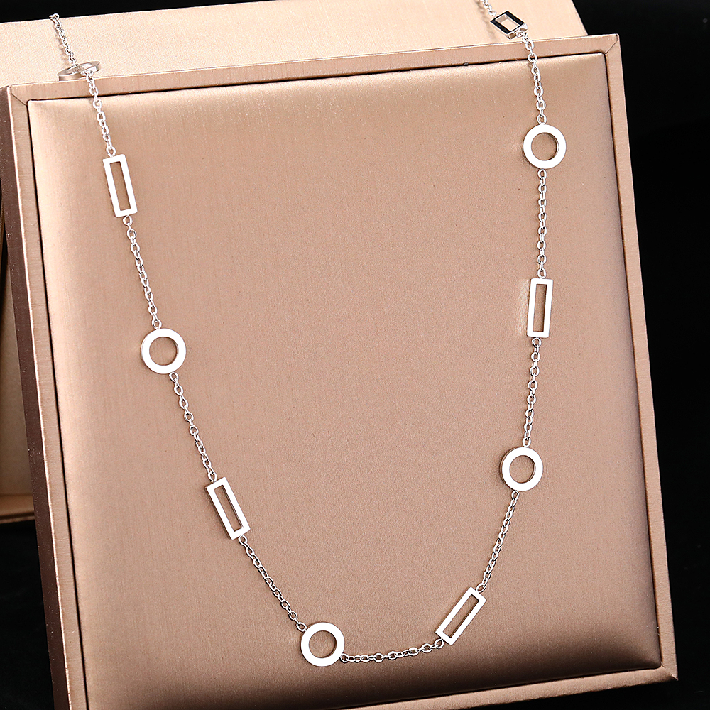 Stainless Steel Necklaces Minimalist Round Rectangle Accessories Clavicle Chain Choker Punk Necklace For Women Jewelry Fine Gift Silver Color – Sumsfashion