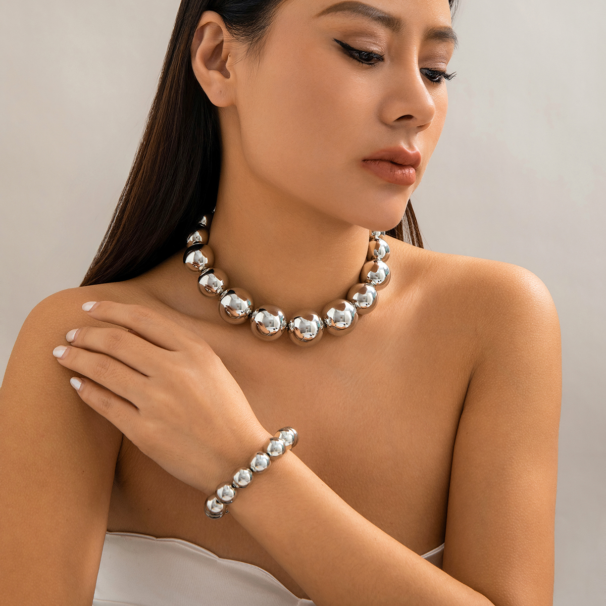 Ultimately, I was still not satisfied. I wanted something that felt more complete and less disjointed. This is when I stumbled upon a different kind of jewelry set that made me think about accessorizing with a bolder statement. I found this 2Pcs Goth Creative Big CCB Beads Chain Necklace Bracelet from Sumsfashion. While not a wedding band solution, it did spark the idea of expressing my personal style with bold jewelry choices.